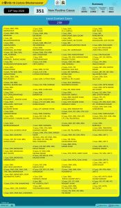 ଭୁବନେଶ୍ୱର() ଆଜି ଭୁବନେଶ୍ୱରରୁ ୩୫୧ କରୋନା ଆକ୍ରାନ୍ତ ଚିହ୍ନଟ ହୋଇଛନ୍ତିି । ଚିହ୍ନଟ ହୋଇଥିବା ୩୫୧ ନୂଆ ଆକ୍ରାନ୍ତଙ୍କ ମଧ୍ୟରୁ ସଙ୍ଗରୋଧ କେନ୍ଦ୍ରରୁ ୧୧୩ ଓ ସ୍ଥାନୀୟ ଅଞ୍ଚଳରୁ ୨୩୮ ଜଣ ଚିହ୍ନଟ ହୋଇଛନ୍ତି । ଏନେଇ ବିଏମସି ପକ୍ଷରୁ ସୂଚନା ମିଳିଛି ।