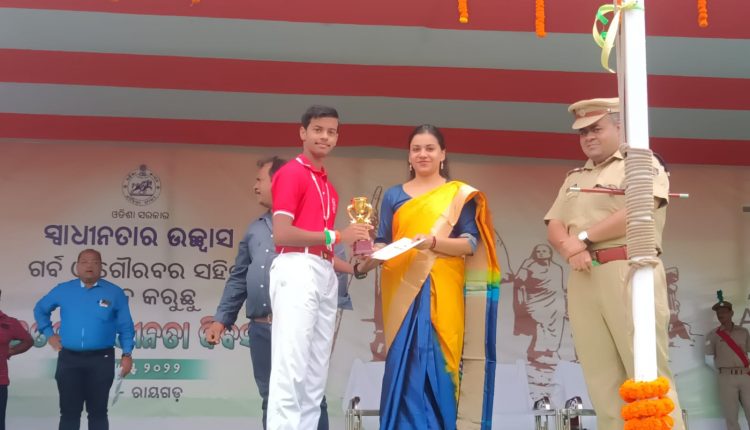 ରାୟଗଡ।:ଜିଲ୍ଲାସ୍ତରୀୟ ୭୬ତମ ସ୍ବାଧୀନତା ଦିବସ ରାୟଗଡ । ଜିଲ୍ଲା ସଦର ମହକୁମାର ସ୍ଥାନୀୟ ଜି.ସି.ଡି ଉଚ୍ଚ ବିଦ୍ୟାଳୟ ପଡିଆ ଠାରେ ଅନୁଷ୍ଠିତ ହୋଇଯାଇଛି । ଏହି ଉତ୍ସବରେ ଶ୍ରୀମତୀ ସ୍ବଧା ଦେବ ସିଂ, ମୁଖ୍ୟ ଅତିଥି ଭାବେ ଯୋଗଦେଇ ସକାଳ ଘ.୯.୧୫ମି ସମୟରେ ଜାତୀୟ ପତାକା ଉତ୍ତୋଳନ କରିବା ସଙ୍ଗ ସଙ୍ଗେ ପ୍ୟାରେଡ ଅବିବାଦନ ଗ୍ରହଣ କରିଥିଲେ ଓ  ଜିଲ୍ଲାବାସୀଙ୍କ ଉଦେଶ୍ୟରେ ସ୍ବାଧୀନତା ଦିବସ ପାଳନ ଅବସରରେ ଉଦବୋଧନ ଦେଇ କହିଥିଲେ ଯେ ଦେଶର ସ୍ବାଧୀନତା ପାଇଁ ଅନେକ ସଂଗ୍ରାମୀଙ୍କୁ ଆତ୍ମ ବଳିଦାନ ଦେବାକୁ ପଡିଛି।