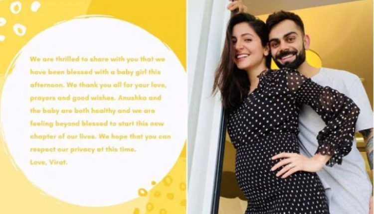 ଟ୍ୱିଟରେ ବିରାଟ ଲେଖିଛନ୍ତି, ‘ସୋମବାର ଅପରାହ୍ନରେ ଆମର ଏକ ଶିଶୁ କନ୍ୟା ଜନ୍ମ ନେଇଛି । ସମସ୍ତଙ୍କ ଆଶୀର୍ବାଦ, ପ୍ରାର୍ଥନା ଏବଂ ଭଲପାଇବା ପାଇଁ ଅଶେଷ ଅଶେଷ ଧନ୍ୟବାଦ । ଅନୁଷ୍କା ଏବଂ ଶିଶୁ ଉଭୟ ସୁସ୍ଥ ଅଛନ୍ତି । ଏକ ନୂଆ ଜୀବନ ଆରମ୍ଭ ହେବାକୁ ଯାଉଛି । ଆଶା କରୁଛୁ ଆପଣମାନେ ସମସ୍ତେ ସେମିତି ଆମ ପ୍ରତି ଭଲାପାଇବା ଜାରି ରଖିବେ’ ।