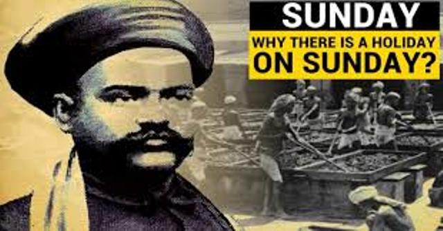 ୧୦ ଜୁନ୍ ୧୮୯୦ରେ ରବିବାରକୁ ଛୁଟି ରୂପରେ ସ୍ୱୀକାର କରାଯାଇଥିଲା। ଇଂରେଜ ଶାସନ ସମୟରେ ମଜୁରିଆ ମିନେ ସପ୍ତାହରେ ସାତ ଦିନ କାମ କରିବାକୁ ପଡୁଥିଲା। ତ ଏଥିପାଇଁ ମଜୁରିଆ ମାନଙ୍କ ନେତା ନାରାୟଣ ମେଘାଜୀ ଏହି ପ୍ରସ୍ତାବ ଇଂରେଜ ସରକାରଙ୍କ ପାଖରେ ରଖିଥିଲେ। ଇଂରେଜ ସରକାର ଏଥିରେ ରାଜି ନହେବାରୁ ସାତ ବର୍ଷ ଯୁଦ୍ଧ ହୋଇଥିଲା ଏହାପରେ ଶ୍ରମିକ ମାନଙ୍କ ପାଇଁ ସପ୍ତାହର ରବିବାରକୁ ଛୁଟି ଘୋଷଣା କରାଯାଇଥିଲା।