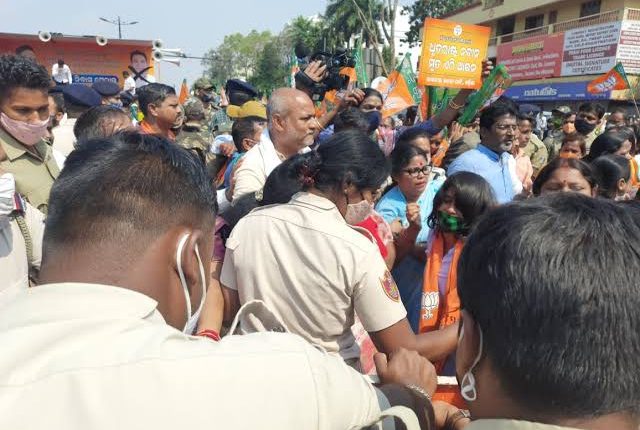 ଏନେଇ ବିଜେପି ରାଜ୍ୟ କାର୍ଯ୍ୟାଳୟରୁ ରାଲି ନବୀନ ନିବାସ ଆଡ଼କୁ ଯାଉଥିବା ବେଳେ ସେମାନଙ୍କୁ ପୋଲିସ ଅଟକାଇଥିଲା। ଆଇନଶୃଙ୍ଖଳା ସ୍ଥିତିକୁ ଦୃଷ୍ଟିରେ ରଖି ଶିଶୁଭବନ ଛକରେ ପୋଲିସ ଅଟକାଇବାରୁ ଧସ୍ତାଧସ୍ତି ହୋଇଥିଲା।