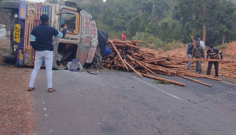 କୋରାପୁଟ ଜିଲ୍ଲା ଲକ୍ଷ୍ମୀପୁର ବ୍ଲକ୍ ଅନ୍ତର୍ଗତ ୩୨୬ ନଂ ଜାତୀୟ ରାଜପଥ ମୀନାପାଇ ଘାଟିରେ ଭାରସାମ୍ୟ ହରାଇ ଏକ କାଠ ବୋଝେଇ ଟ୍ରକ୍ ଓଲଟିଛି। ତଳେ କାଠ ପଡ଼ି ଜାତୀୟ ରାଜପଥ ଅବରୋଧ ହୋଇଯାଇଛି। ଏହାଫଳରେ ଉଭୟ ପଟେ ବହୁ ଗାଡ଼ିମୋଟର ଅଟକିଛି।