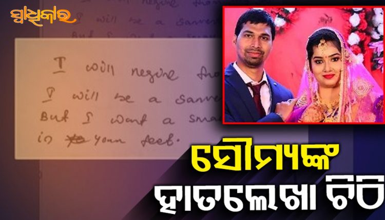 ପାରଳାଖେମୁଣ୍ଡି: ପତ୍ନୀ ବିଦ୍ୟାଭାରତୀଙ୍କ ଦୁଇଟି ଚିଠି ଭାଇରାଲ ହେବା ପରେ ଏବେ ସ୍ୱାମୀ ସୌମ୍ୟଙ୍କ ଏକ ହାତଲେଖା ଚିଠି ଭାଇରାଲ ହେବାରେ ଲାଗିଛି । ଇଂଲିସରେ ଲେଖା ଯାଇଥିବା ଏହି ଚିଠିରେ ଅନେକ ଗୁଡିଏ କଥା ଲେଖାଯାଇଛି । ତେବେ ଏଥିରେ ଲେଖା ଅଛି କି, ଜଣେ ପତ୍ନୀ ଓ ଭଲ ବନ୍ଧୁ ହିସାବରେ ସେ ତାଙ୍କଠାରୁ ବ୍ୟବହାର ଚାହୁଁଛନ୍ତି । ପତ୍ନୀଙ୍କ ଶିକ୍ଷାଗତ ଯୋଗ୍ୟତା ତାଙ୍କ ପାଇଁ ଗୁରୁତ୍ୱ ରଖେ ନାହିଁ । ଏହାପରେ ଯଦି ବି କିଛି ଘଟେ ସେ ଦିଗରେ ତାଙ୍କର କିଛି ଭୂମିକା ରହିବ ନାହିଁ । ଘରୋଇ ହିଂସା ବିରୋଧରେ ପତ୍ନୀ ଚାହିଁଲେ ଆଇନର ଆଶ୍ରୟ ନେଇପାରିବେ । ଆବଶ୍ୟକ ପଡିଲେ ନିଜ ଚାକିରୀରୁ ଇସ୍ତଫା ଦେଇ ସ୍ତ୍ରୀଙ୍କ ସେବା କରିବା ପାଇଁ ପ୍ରସ୍ତୁତ ଅଛନ୍ତି ବୋଲି ଲେଖିଛନ୍ତି ସୌମ୍ୟରଞ୍ଜନ ମହାପାତ୍ର । ପତ୍ନୀ ଯାହା ଚାହୁଁଛନ୍ତି ସେ ସବୁ ପୂରଣ କରିବା ପାଇଁ ପ୍ରସ୍ତୁତ ଥିବା କହିଛନ୍ତି ସୌମ୍ୟରଞ୍ଜନ ।