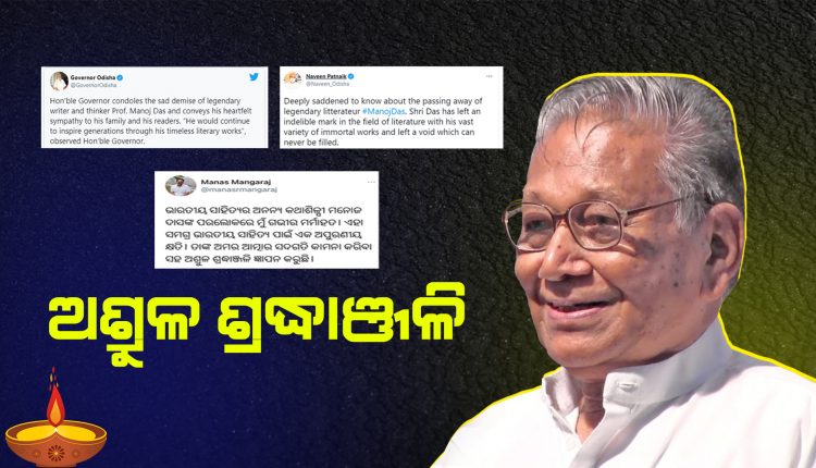 ସେହିଭଳି ଗଣମାଧ୍ୟମ ବିଭାଗ ମୁଖ୍ୟ ମାନସ ମଙ୍ଗରାଜ ମନୋଜ ଦାସଙ୍କ ଅକାଳ ବିୟୋଗ ସମଗ୍ର ଭାରତୀୟ ସାହିତ୍ୟ ପାଇଁ ବିରାଟ କ୍ଷତି ବୋଲି କହିଛନ୍ତି । ଏହାସହ ସ୍ୱର୍ଗତ ଦାସଙ୍କ ପରଲୋକରେ ସେ ଗଭୀର ମର୍ମାହତ ହେବା ସହ ଅଶ୍ରୁଳ ଶ୍ରଦ୍ଧାଞ୍ଜଳୀ ଜ୍ଞାପନ କରିଛନ୍ତି । ମନୋଜ ଦାସ ପଦ୍ମଶ୍ରୀ (୨୦୦୧) ଓ ପଦ୍ମଭୂଷଣ ସମ୍ମାନ (୨୦୨୦)ରେ ସମ୍ମାନିତ ହୋଇଥିଲେ । ଏହାବ୍ୟତୀତ ସେ କେନ୍ଦ୍ର ସାହିତ୍ୟ ଏକାଡେମୀ, ସରସ୍ୱତୀ ପୁରସ୍କାର ପାଇଥିଲେ ।