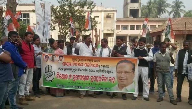 ଗତକାଲି ରାତିରେ କେନ୍ଦୁଝର କାଶୀପୁର ଠାରେ ପିସିସି ସଭାପତି ନିରଞ୍ଜନ ପଟ୍ଟନାୟକଙ୍କ ଉପରେ ହୋଇଥିବା ଆକ୍ରମଣକୁ କଡ଼ା ବିରୋଧ କରିଛି ଭଦ୍ରକ ଜିଲ୍ଲା କଂଗ୍ରେସ | ଆଜି ଜିଲ୍ଲା କଂଗ୍ରେସ ସଭାପତି ସୁବ୍ରତ ଦାସଙ୍କ ନେତୃତ୍ୱରେ ଦଳୀୟ ନେତା ଓ କର୍ମୀମାନେ ଜିଲ୍ଲା କାର୍ଯ୍ୟଳୟ ଠାରୁ ଏକ ଶୋଭାଯାତ୍ରାରେ ବାହାରି ଏସପି ଅଫିସ ସମ୍ମୁଖରେ ବିକ୍ଷୋଭ ପ୍ରଦର୍ଶନ କରିଥିଲା | ପରେ ସେଠାରେ କଂଗ୍ରେସ ପକ୍ଷରୁ ମୁଖ୍ୟମନ୍ତ୍ରୀଙ୍କ କୁଶପୁତ୍ତଳିକା ଦାହ କରାଯାଇଥିଲା |