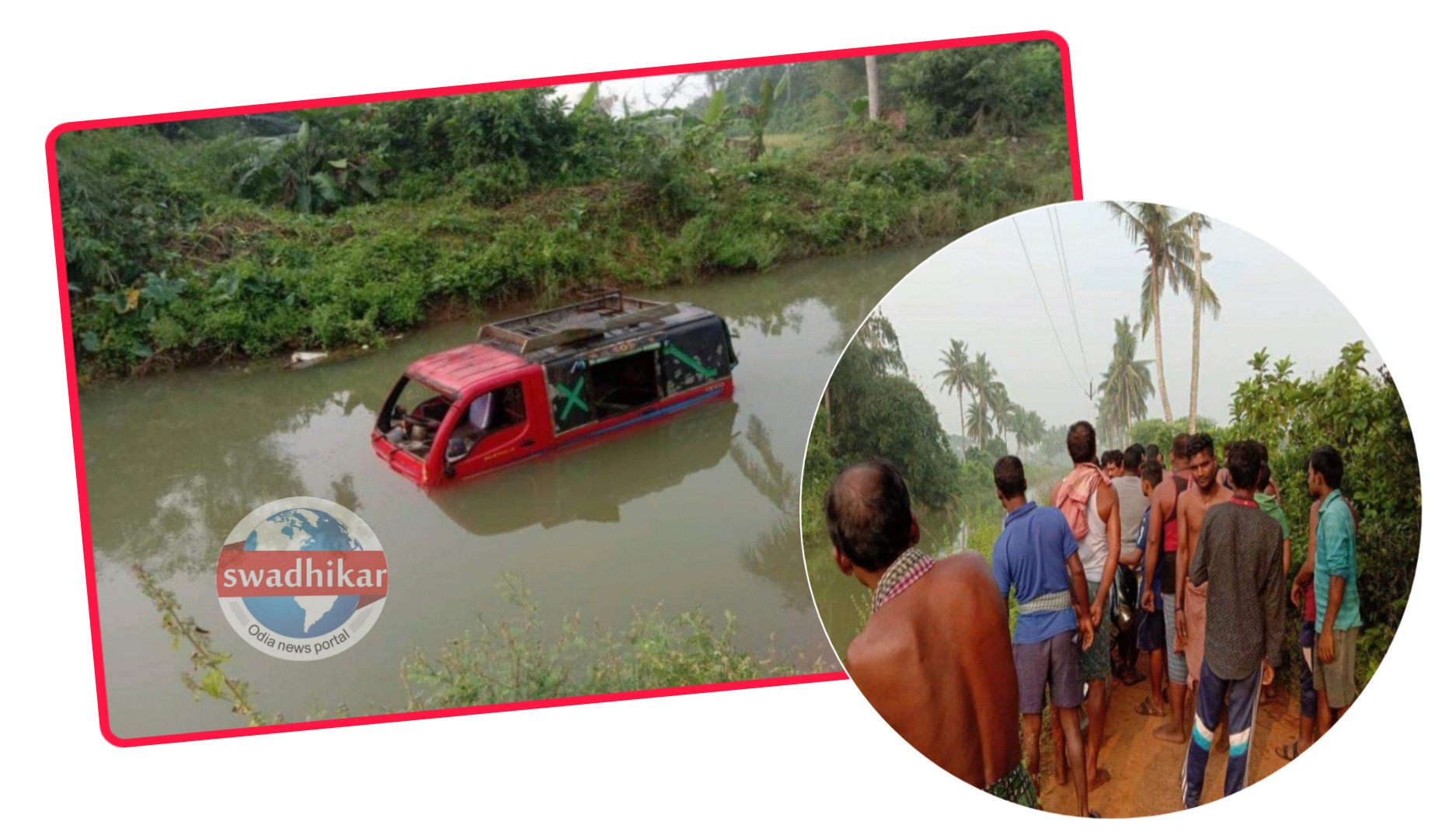 କୋଣାର୍କ : କୋଣାର୍କ ଚାରିଛକ ଅମରେଶ୍ବର ଠାରେ ଏକ ଅଭାବନୀୟ ଘଟଣା ଘଟିଛି। ବିବେକାନନ୍ଦ ସ୍କୁଲ ପିଲାମାନେ ଏକ ଟାଟା ମେଜିକ ଗାଡ଼ିରେ ସ୍କୁଲକୁ ଯାଉଥିବା ବେଳେ କୋଇଲି ନୂଆପଡା କେନାଲ ବନ୍ଧରୁ ଟାଟା ମେଜିକ ଭାରସାମ୍ୟ ହରାଇ କେନାଲ ଭିତରକୁ ଖସିଯାଇଥିଲା। କେନାଲ ଭିତରେ ପାଣି ଥିବାରୁ ଭ୍ୟାନଟି ପାଣିରେ ଅଧା ବୁଡିଯାଇଥିଲା।