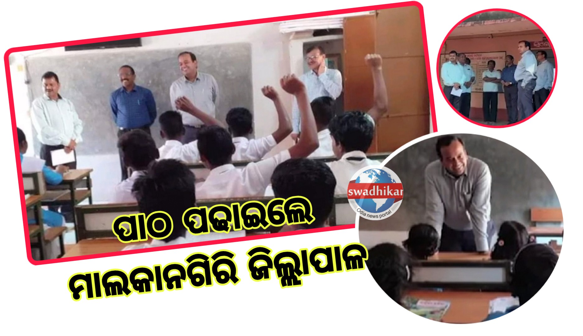 ମାଲକାନଗିରି : ପାଠ ପଢାଇଲେ ମାଲକାନଗିରି ଜିଲ୍ଲାପାଳ । ମାଲକାନଗିରି RAC-6 ଓ RAC-9 ଗାଁ ସ୍କୁଲରେ ପାଠ ପଢାଇଥିଲେ। ଛାତ୍ରଛାତ୍ରୀଙ୍କୁ କିଛି ପ୍ରଶ୍ନ ପଚାରିବା ସହ ନିଜେ ପିଲାଙ୍କୁ ପଢାଇଥିଲେ । ପିଲାମାନେ ମଧ୍ୟ ଆଗ୍ରହର ସହ ଜିଲ୍ଲାପାଳଙ୍କ ପ୍ରଶ୍ନର ଉତ୍ତର ଦେଇଥିଲେ।