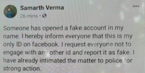 ସୂଚନାଯୋଗ୍ୟ ଯେ, କେନ୍ଦ୍ରାପଡ଼ା ଜିଲ୍ଲାପାଳ ସମର୍ଥ ବର୍ମାଙ୍କ ନାଁରେ ଫେକ୍ ଆକାଉଣ୍ଟ୍ ଖୋଲିଯାଇଥିବା ଅଭିଯୋଗ ଆସିଛି l ଫେସବୁକ୍ ରେ କେହି ଦୁବୃର୍ତ୍ତ ଏହି ଫେକ୍ ଆକାଉଣ୍ଟ୍ ଖୋଲି ଏହାକୁ ପରିଚାଳନା କରୁଥିବା ଅଭିଯୋଗ ହୋଇଛି l