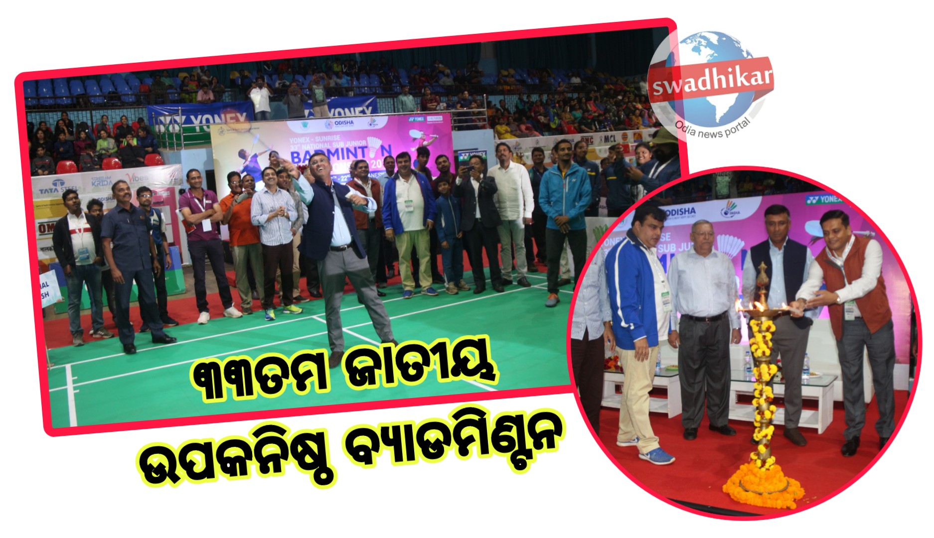 ଭୁବନେଶ୍ୱର : ୩୩ଟି ରାଜ୍ୟ ତଥା କେନ୍ଦ୍ର ଶାସିତ ଅଳରୁ ଆସିଥିବା ୫୦୦ରୁ ଅଧିକ ଉଦୀୟମାନ ସଟ୍ଲର ପୂର୍ଣ୍ଣ ଉତ୍ସାହ ସହ ୩୩ତମ ଜାତୀୟ ଉପକନିଷ୍ଠ ଵ୍ୟାଡମିଣ୍ଟନ ପ୍ରତିଯୋଗିତା ୨୦୧୯ରେ ନିଜର ଅଭିଯାନ ଆରମ୍ଭ କରିଛନ୍ତି । ଯାହାକି ଆଜିଠାରୁ ସମକାଳିନ ଭାବେ ସ୍ଥାନୀୟ ପୂର୍ବତଟ ରେଳବାଇ ଇଣ୍ଡୋର ଷ୍ଟାଡିୟମ ଓ ସହିଦ୍ ନଗଦ ଇଣ୍ଡୋର ହଲ୍ଠାରେ ଆୟୋଜିତ ହୋଇଛି । ପ୍ରଥମ ଥର ପାଇଁ ଓଡିଶା ସରକାରଙ୍କ କ୍ରୀଡା ଓ ଯୁବ ସେବା ବିଭାଗ ସହଯୋଗରେ ଓଡିଶା ଷ୍ଟେଟ୍ ଵ୍ୟାଡମିଣ୍ଟନ ଆସୋସିଏଶନ (ଓଏସ୍ବିଏ) ଏହି ପ୍ରତିଯୋଗିତାର ପରିଚାଳନା କରୁଛି । ଏହି ଛଅ ଦିନିଆ ପ୍ରତିଯୋଗିତାକୁ ଅସିତ୍ ତ୍ରିପାଠୀ, ମୁଖ୍ୟ ଶାସନ ସଚିବ, ଓଡିଶା ସରକାର, ବ୍ୟାଡ୍ମିନ ଆସୋସିଏଶନ ଅଫ୍ ଇଣ୍ଡିଆ (ବିଆଇଏ)ର ଉପାଧ୍ୟକ୍ଷ ଓ ଡି ଶର୍ମା, ଓଏସ୍ବିଏ ଅଧ୍ୟକ୍ଷ ରୋହିତ ପୂଜାରୀ ଓ ଟୂର୍ଣ୍ଣାମେ କନ୍ଭେନର ରାଜେଶ ପାଟିଲଙ୍କ ଉପସ୍ଥିତିରେ ଉଦ୍ଘାଟନ କରାଯାଇଛି ।