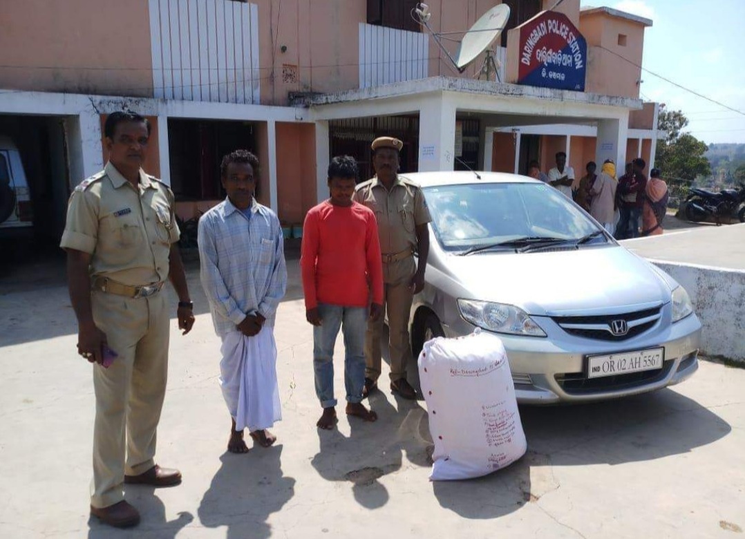 ଦାରିଙ୍ଗବାଡ଼ି : ୨୨କେଜି ଗଞ୍ଜେଇ ସହ ହୁଣ୍ଡାଇ କାର ଜବତ, ଦୁଇ ବ୍ୟବସାୟୀ ଗିରଫ ।ବାଲିଗୁଡାରୁ ବ୍ରହ୍ମପୁର ଯାଉଥିବା ବେଳେ ଦାରିଙ୍ଗବାଡ଼ି ପୋଲିସ ସୁଲୁମାହା ଘାଟିରେ ହୁଣ୍ଡାଇ କାରକୁ ଅଟକାଇ ଥିଲା। ହେଲେ ସେତିକିବେଳେ ଡ୍ରାଇଭର ଗାଡି ଛାଡି ଜଙ୍ଗଲକୁ ଦୌଡି ଚାଲିଯାଇଥିଲା କିନ୍ତୁ ଘଟଣା ସ୍ଥଳରୁ ଅନ୍ୟ ଦୁଇ ଅଭିଯୁକ୍ତକୁ ପୋଲିସ କାବୁକରି ନେଇଥିଲା । ହୁଣ୍ଡାଇ କାର ନମ୍ବର ହେଲା OR02AH5567 ଥିବାବେଳେ ଗାଡିର ମାଲିକ ନାମ ମନୋଜ ଦିଗାଳ ନାମରେ ରହିଛି। ଗାଡିଟି ଭୁବେନେଶ୍ୱର ରେଜିଷ୍ଟ୍ରେସନ ନମ୍ବର ଥିବାରୁ ଏହା ଠିକ ନମ୍ବର ନା ଏହା ଲଗାଯାଇଛି ତାହା ଜଣାପଡିନାହିଁ । ଅଭିଯୁକ୍ତ ଦୁଇଜଣ ହେଲେ ବାଲିଗୁଡା ଥାନା ଅନ୍ତର୍ଗତ ବରିକିଆ ଗ୍ରାମର ଗେଗୁ ମଲ୍ଲିକ ଏବଂ ଗୋବିନ୍ଦ ମଲ୍ଲିକ।
