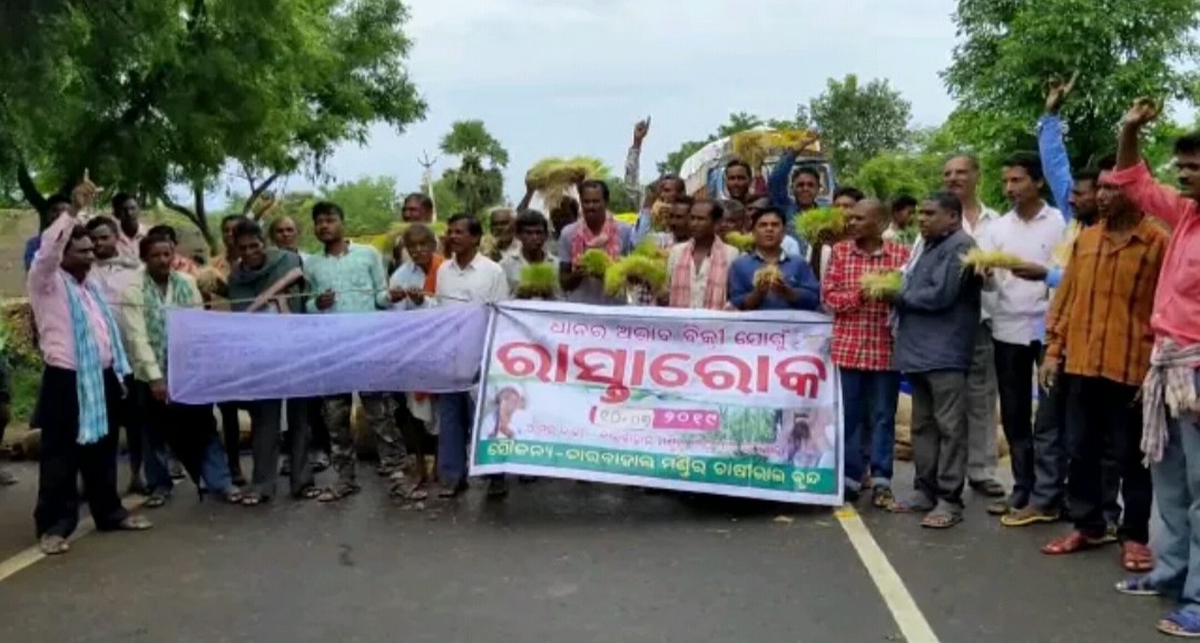 ଧାନ ମଣ୍ଡିରୁ ଧାନ ଉଠାଇବା ଦାବିରେ ଜାତୀୟ ରାଜପଥ ଅବରୋଧ