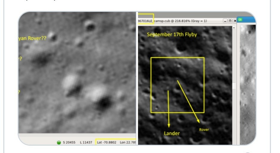 ଶନମୁଗ କହିଥିଲେ ଯେ, ୪ ଜାନୁଆରୀର ଫଟୋରୁ ଲାଗୁଛି ଯେ, ପ୍ରଜ୍ଞାନ ଅକ୍ଷତ ଭାବରେ ରହିଛି ଓ ଲ୍ୟାଣ୍ଡିଂ ସ୍ଥାନଠାରୁ କିଛି ମିଟର ଆଗକୁ ବଢିଯାଇଛି। ସୁଭ୍ରମଣ୍ୟମଙ୍କ କହିବା ଅନୁସାରେ, ବହୁ ଦିନ ପର୍ଯ୍ୟନ୍ତ ଲ୍ୟାଣ୍ଡରକୁ କମାଣ୍ଡ ପଠାଯାଉଥିଲା। ଏହି କଥାର ଆଶଙ୍କା ରହିଛି ଯେ, ଲ୍ୟାଣ୍ଡର କମାଣ୍ଡକୁ ରୋଭର ପର୍ଯ୍ୟନ୍ତ ପଠାଇଛନ୍ତି, କିନ୍ତୁ ସମ୍ପର୍କ ବିଚ୍ଛିନ୍ନ ହେବା କାରଣରୁ ପୃଥିବୀର ନିୟନ୍ତ୍ରଣ କକ୍ଷ ପର୍ଯ୍ୟନ୍ତ ପଠାଇବାରେ ସକ୍ଷମ ନାହିଁ।