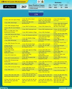 ରାଜଧାନୀ ଭୁବନେଶ୍ବରରୁ ଆଜି ୨୬୭ କରୋନା ଆକ୍ରାନ୍ତ ଚିହ୍ନଟ । ଏଥିରୁ କ୍ବାରେଣ୍ଟାଇନ କେସ ରହିଛି ୧୫୩ ଓ ଲୋକାଲ କେସ ରହିଛି ୧୧୪। ଏହି ୧୫୩ କ୍ବାରେଣ୍ଟାଇନ କେସରୁ ୧୫୨ ଜଣ ପୂର୍ବ ସଂକ୍ରମିତଙ୍କ ସଂସ୍ପର୍ଷରେ ଆସିଥିବାର ସୂଚନା ଦେଇଛି ବିଏମସି।