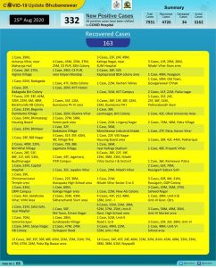 ଭୁବନେଶ୍ୱର : ଭୁବନେଶ୍ୱରରେ ଆଜି ଆଉ ୩୩୨ କରୋନା ପଜିଟିଭ୍ ଚିହ୍ନଟ ହୋଇଛନ୍ତି । କ୍ୱାରାଣ୍ଟାଇନରୁ ୧୭୩ ଜଣ ଆକ୍ରାନ୍ତ ହୋଇଥିବା ବେଳେ ସ୍ଥାନୀୟ ଭବେ ୧୫୯ ଚିହ୍ନଟ ହୋଇଛନ୍ତି । ଏନେଇ ବିଏମ୍ସି ପକ୍ଷରି ଟ୍ୱିଟ୍ ଯୋଗେ ସୂଚନା ଦିଆଯାଇଛି ।
