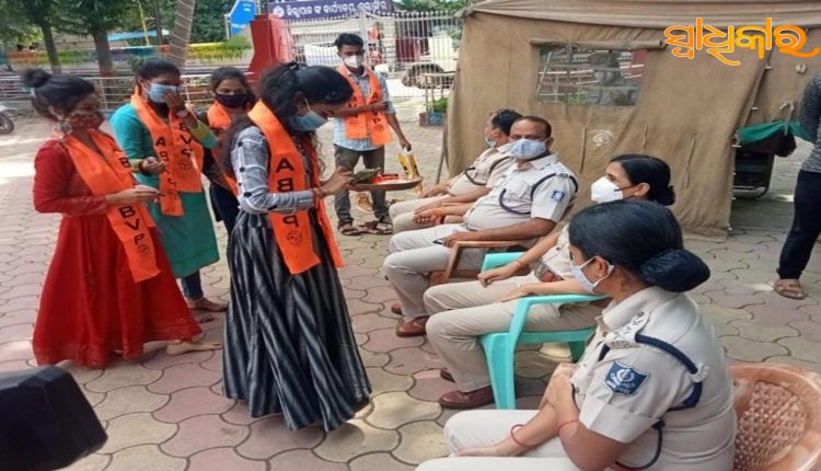 ସେନା କର୍ମଚାରୀ ଏବଂ କରୋନା ଯୋଦ୍ଧାଙ୍କୁ ରାକ୍ଷୀ ବାନ୍ଧିଲେ ଏବିଭିପି ଛାତ୍ରୀ