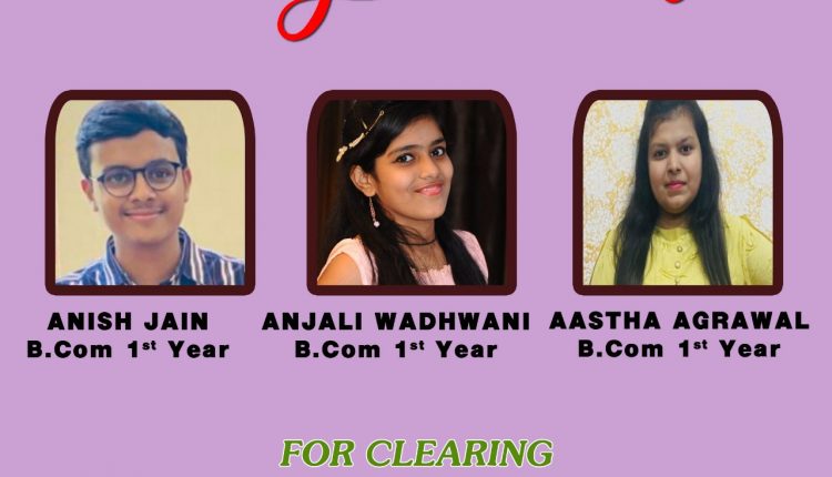 ବଲାଙ୍ଗୀର: ବଲାଙ୍ଗୀର ସହରମଧ୍ୟରେ ଥିବା ଜେ,ଏସ,ଏମ,ବାଣିଜ୍ୟ ବିଭାଗ କଲେଜର ତିନୋଟି ଛାତ୍ରଛାତ୍ରୀ ଅଞ୍ଜଲି ୱାଡୱାନି,ଅନିସ୍ ଜୈନ୍ ଓ ଆସ୍ଥା ଅଗ୍ରବାଲ ସି.ଏ ଫାଉଣ୍ଡେସ୍ନ୍ ପରୀକ୍ଷା- ଜୁଲଇ ୨୦୨୧ ରେ ଉତ୍ତିନ ହୋଇ ବଲାଙ୍ଗିର ପାଇଁ ଗୌରବ ସାଜିଛନ୍ତି । ଆଗକୁ ସେମାନେ କିପରି ଏକ ଉତ୍ତମ ସି.ଏ ହୋଇ ଲୋକଙ୍କ ସେବା କରିପାରିବେ ତାଙ୍କର ଲକ୍ଷ୍ୟ ରହିଛି ପୁଣି ଏହି ଶିକ୍ଷ୍ୟା ଅନୁଷ୍ଠାନକୁ ମଧ୍ୟ ଅଶେଷ ଧନ୍ୟବାଦ ଜ୍ଞାପନ କରିଛନ୍ତି ।