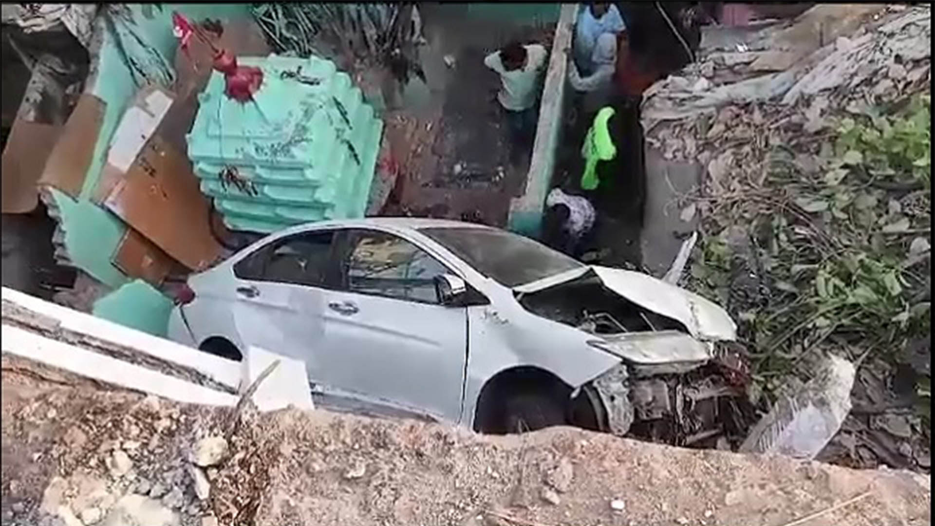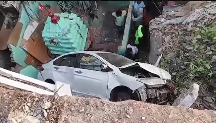 ବ୍ରିଜ୍ ଉପରୁ ଖସି ବସ୍ତି ଉପରେ ପଡିଲା କାର୍, ଅଳ୍ପେକେ ବଞ୍ଚିଗଲେ ଡ୍ରାଇଭର