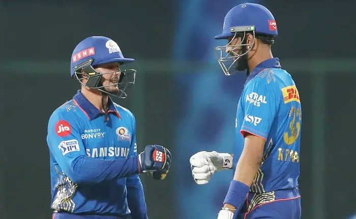 ନୂଆଦିଲ୍ଲୀ : କ୍ରମାଗତ ଦୁଇଟି ମ୍ୟାଚ୍ ହାରିବା ପରେ ଡିଫେଣ୍ଡିଂ ଚାମ୍ପିଅନ୍ ମୁମ୍ବାଇ ଇଣ୍ଡିଆନ୍ସ ଆଜି ବିଜୟଧାରାକୁ ଫେରିଛି । ଆଜି ଆଇପିଏଲ୍ ଦୁଇଟି ମ୍ୟାଚ୍ରୁ ପ୍ରଥମ ମ୍ୟାଚ୍ରେ ମୁମ୍ବାଇ ଇଣ୍ଡିଆନ୍ସ ୭ ୱିକେଟରେ ରାଜସ୍ଥାନ ରୟାଲ୍ସକୁ ପରାସ୍ତ କରିଛି ।କ୍ୱିଣ୍ଟନ୍ ଡି’କକ୍ ଓ କୃନାଲ୍ ପାଣ୍ଡ୍ୟାଙ୍କ ଦମଦାର ବ୍ୟାଟିଂ ବଳରେ ମୁମ୍ବାଇ ଇଣ୍ଡିଅ ।ନ୍ସ ୭ ୱିକେଟରେ ରାଜସ୍ଥାନ ରୟାଲ୍ସକୁ ପରାସ୍ତ କରିଛି ।ଉକ୍ତ ମ୍ୟାଚରେ ପ୍ରଥମେ ବ୍ୟାଟିଂ କରିଥିବା ରାଜସ୍ଥାନ ରୟାଲ୍ସ ୪ ୱିକେଟ୍ ହରାଇ ୧୭୧ ରନ୍ କରିଥିଲା ।ଜବାବରେ ମୁମ୍ବାଇ ୧୮.୩ ଓଭରରେ ୩ ୱିକେଟ୍ ହରାଇ ୧୭୨ ରନ୍ କରି ବିଜୟୀ ହୋଇଛି । ଏହି ବିଜୟ ସହ ମୁମ୍ବାଇ ୬ ମ୍ୟାଚରୁ ୩ ବିଜୟ ହାସଲ କରିଛି । ସେହିପରି ରାଜସ୍ଥାନ ୬ ମ୍ୟାଚରୁ ୨ଟି ବିଜୟୀ ହୋଇଛି ।