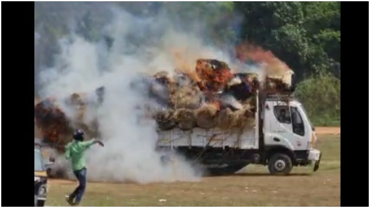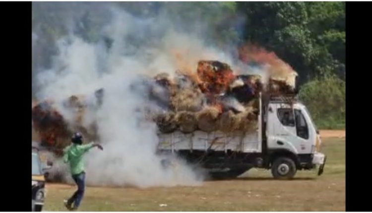 ହୁତୁହୁତୁ ହୋଇ ଜଳିଲା ଚାଉଳ ବୋଝେଇ ଟ୍ରକ