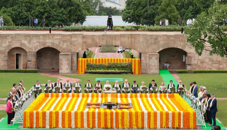 ଜି-20 ଶିଖର ସମ୍ମିଳନୀରେ ଜାତିର ପିତା ମହାତ୍ମା ଗାନ୍ଧିଙ୍କୁ ଶ୍ରଦ୍ଧାଞ୍ଜଳି। ଆଜି ଦ୍ୱିତୀୟ ଦିନର କାର୍ଯ୍ୟକ୍ରମରେ ରାଜଘାଟରେ ପ୍ରଧାନମନ୍ତ୍ରୀ ନରେନ୍ଦ୍ର ମୋଦିଙ୍କ ସମେତ ଜି-20 ଦେଶର ରାଷ୍ଟ୍ରମୁଖ୍ୟ ବାପୁଙ୍କୁ ଶ୍ରଦ୍ଧାଞ୍ଜଳି ଜ୍ଞାପନ କରିଛନ୍ତି। ସକାଳେ ବାପୁଙ୍କ ସମାଧି ପୀଠରେ ପହଞ୍ଚି ନିରବ ପ୍ରାର୍ଥନା ସହ ଶ୍ରଦ୍ଧାଞ୍ଜଳି ଜଣାଇଛନ୍ତି ବିଭିନ୍ନ ଦେଶର ରାଷ୍ଟ୍ରମୁଖ୍ୟ।
