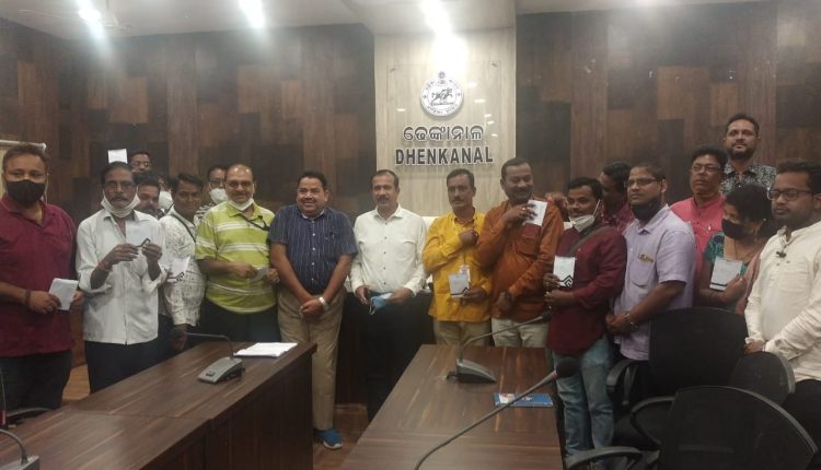 ଆଜି ପୂର୍ବାହ୍ନରେ ଜିଲ୍ଲାପାଳ କାର୍ଯ୍ୟାଳୟର ସଦଭାବନା ସଭାଗୃହ ଠାରେ ଜିଲ୍ଲାପାଳ ଶ୍ରୀ ସରୋଜ କୁମାର ସେଠୀ ଢେଙ୍କାନାଳର କାର୍ଯ୍ୟରତ ସାମ୍ବାଦିକମାନଙ୍କୁ ଗୋପବନ୍ଧୁ ସ୍ବାସ୍ଥ୍ୟ ବୀମା କାର୍ଡ ପ୍ରଦାନ କରିଛନ୍ତି । ଏହି ଅବସରରେ ଜିଲ୍ଲାପାଳ ଉପସ୍ଥିତ ସମସ୍ତ ଗଣମାଧ୍ୟମର ପ୍ରତିନିଧିମାନଙ୍କୁ ସତ୍ୟ ଓ ସକାରାତ୍ମକ ସଂବାଦ ପରିବେଷଣ କରିବାକୁ କହିବା ସହିତ ଜିଲ୍ଲାର ସର୍ବାଙ୍ଗୀନ ଉନ୍ନତି ନିମନ୍ତେ ସହଯୋଗ କରିବାକୁ ନିବେଦନ କରିଛନ୍ତି ।