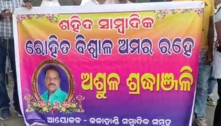 କଳାହାଣ୍ଡି : ଖବର ସଂଗ୍ରହ କରିବାକୁ ଯାଇଥିବା ସାମ୍ବାଦିକ ମାଓବାଦୀଙ୍କ ଲ୍ୟାଣ୍ଡମାଇନ୍ ବିଷ୍ଫୋରଣରେ ଆଖି ବୁଜି ଦେଇଥିଲେ । ସେହି ଖବର ଜିଲ୍ଲାରେ ବିଜୁଳି ବେଗରେ ପ୍ରଚାର ହେବା ପରେ ସମଗ୍ର ଜିଲ୍ଲାରେ ଶୋକର ଛାୟା ଖେଳିଯାଇଥିଲା । ବିଶେଷ କରି ସାମ୍ବାଦିକ ମହଲରେ ଗଭୀର ଦୁଃଖ ପ୍ରକାଶ କରିବା ସହ ଘଟଣାକୁ ନେଇ ଜିଲ୍ଲାର ସମସ୍ତ ସାମ୍ବାଦିକ ମର୍ମାହତ ହୋଇ ପଡିଥିଲେ । ଆଜି ସନ୍ଧ୍ୟାରେ କଳାହାଣ୍ଡି ଜିଲ୍ଲା ସାମ୍ବାଦିକ ସମୁହ ପକ୍ଷରୁ ମୃତ ସାମ୍ବାଦିକ ରୋହିତ ବିଶ୍ୱାଳଙ୍କ ଅମର ଆତ୍ମାର ସଦଗତି କାମନା କରି ଅଶୃଳ ଶ୍ରଦ୍ଧାଞ୍ଜଳି ଅର୍ପଣ କରିବା ସହ ସ୍ଥାନୀୟ ଷ୍ଟେଚ୍ୟୁ ଛକରୁ ଏକ କ୍ୟାଣ୍ଡଲ ଶୋଭାଯାତ୍ରା ବାହାରି ଗାନ୍ଧୀଛକ ପର୍ୟ୍ୟନ୍ତ ଯାଇଥିଲା । ଜିଲ୍ଲା ସାମ୍ବାଦିକ ସମୁହର ଆହ୍ୱାନ କ୍ରମେ ଦଳମତ ନିର୍ବିଶେଷରେ ବିଭିନ୍ନ ଦଳର ନେତା ତଥା ଯୁବ ନେତା ଓ ଛାତ୍ର ନେତାମାନେ ଯୋଗ ଦେଇଥିବା ବେଳେ ଶିକ୍ଷାବିତ୍ ଆଇନ୍ଜୀବୀ ଓ ସହରର ବୁଦ୍ଧୀଜୀବୀମାନେ ଏହି ଶୋକାକୁଳ ପୁର୍ଣ୍ଣ ଶ୍ରଦ୍ଧାଞ୍ଜଳି ସଭାରେ ସାମିଲ ହୋଇଥିଲେ ।