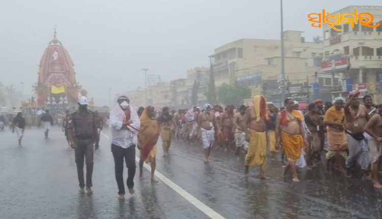 ପୁର: ସୁରୁଖୁରୁରେ ଶେଷ ହୋଇଛି ମହାପ୍ରଭୁଙ୍କ ବାହୁଡ଼ାଯାତ୍ରା । ମଙ୍ଗବାର ଶ୍ରିଜିଉଙ୍କ ବାହୁଡ଼ାଯାତ୍ରା ସମୟରେ ଦେଖିବାକୁ ମିଳିଥିଲା ଏକ ଅପୂର୍ବ ଦୃଶ୍ୟ । ଭାବ ବିନୋଦିଆ ଠାକୁରରଙ୍କ ଭାବରେ ନିମଗ୍ନ ହୋଇଯାଇଥିଲେ ଶ୍ରୀମନ୍ଦିର ମୁଖ୍ୟ ପ୍ରଶାସକ କ୍ରିଷନ କୁମାର । ରଥ ମାଉସିମା ମନ୍ଦିର ନିକଟରେ ପହଞ୍ଚିବା କ୍ଷଣି ପ୍ରବଳ ବର୍ଷା ହୋଇଥିଲା । ତେବେ ଏହି ବର୍ଷାକୁ ଖାତିର ନକରି ସେବାୟତମାନେ ରଥଟଣା ଜାରି ରଖିଥିଲେ । ତେବେ ଏହି ସମୟରେ କ୍ରିଷନ କୁମାର ଆଗେ ଢ଼ୁ ଢ଼ୁ ବର୍ଷାରେ ଓଦାରେ ହୋଇ ଆଗେ ଆଗେ ଚାଲିଥିଲେ । କାଳିଆ ପ୍ରେମରେ ନିଜକୁ ହଜାଇ ମହାପ୍ରଭୁଙ୍କ ଗୀତ କାନ କରି ତାଳି ବଜାଇ ବଜାଇ ଚାଲିଥିଲେ । ମୁଣ୍ଡରେ ଗାମୁଛା ଏବଂ ମୁହଁରେ ମାସ୍କ ପିନ୍ଧି ମାଡ଼ି ଚାଲିଥିଲେ ମୁଖ୍ୟ ପ୍ରଶାସକ ।