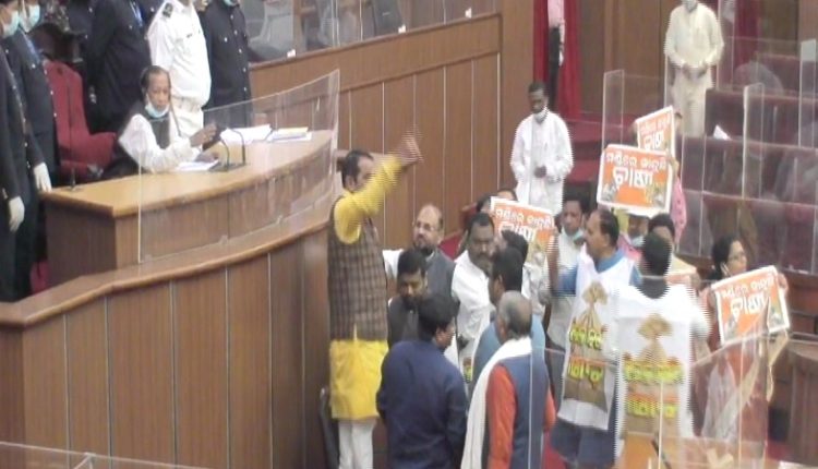 ବିଜେପି ସଦସ୍ୟମାନେ ପ୍ଲାକାର୍ଡ ପ୍ରଦର୍ଶନ କରି ଗାଉନ ପିନ୍ଧି ଗୃହ ମଧ୍ୟ ଭାଗରେ ନାରାବାଜି କରିଥିଲେ। ଗୃହରେ ହଟ୍ଟଗୋଳକୁ ନେଇ ପ୍ରତିକ୍ରିୟା ରଖିଛି ବିଜେପି। ବିରୋଧୀ ଦଳ ଉପନେତା ବିଷ୍ଣୁଚରଣ ସେଠୀ କହିଛନ୍ତି ଯେ ମଣ୍ଡିରେ ଧାନ ପଡ଼ିରହିଛି। ଧାନ ଉଠୁନି । କେତେବେଳେ ଟୋକନ କଥା କହୁଛନ୍ତି । କେତେବେଳେ ଦଳୀୟ .ନେତା ନିଷ୍ପତ୍ତି ନେଉଛନ୍ତି । ସେଥିପାଇଁ ଧାନ ଉଠୁନି । ବିଜେପିର ଦାବି ଅବିଳମ୍ବେ ଧାନ ଉଠାଯାଉ । ଚାଷୀଙ୍କ ସମସ୍ୟାର ସମାଧାନ କରାଯାଉ । ଦିନରେ ଆଖିରେ ଆଙ୍ଗୁଠି ଗେଞ୍ଜି ସତକୁ ମିଛ, ମିଛକୁ ସତ କରୁଛି ବିଜେଡି ବୋଲି ସେ ଅଭିଯୋଗ କରିଛନ୍ତି ।