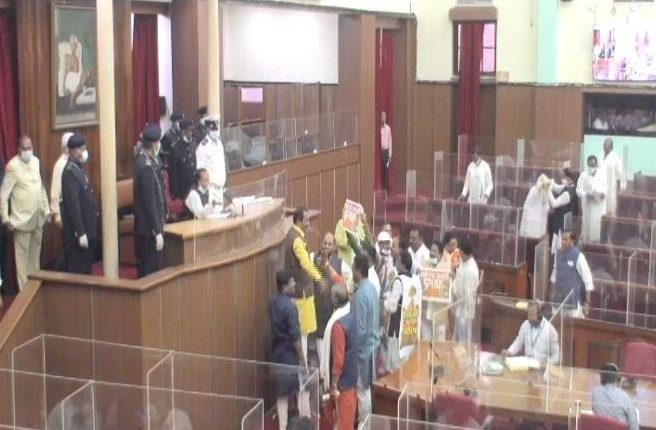 ଏପରିକି ବାଚସ୍ପତିଙ୍କ ସମ୍ମୁଖରେ ଲାଗିଥିବା ଫାଇବାର ଗ୍ଲାସକୁ ବିରୋଧୀ ଖସାଇ ଫିଙ୍ଗିଦେବା ସହ ପୋଡ଼ିଅମ୍ ଉପରକୁ ଚଢ଼ିବାକୁ ଉଦ୍ୟମ ମଧ୍ୟ କରିଛନ୍ତି । ରାଜ୍ୟପାଳଙ୍କ ଅଭିଭାଷଣ ଉପରେ ଧନ୍ୟବାଦ ପ୍ରସ୍ତାବ ଆଲୋଚନା ଚାଲିଥିବା ବେଳେ ଏଭଳି କରିଛନ୍ତି କଂଗ୍ରେସ ଏବଂ ବିରୋଧୀ ଦଳର ସଦସ୍ୟ | ତେବେ ପ୍ରବଳ ହୋହଲ୍ଲା ଓ ହଙ୍ଗାମା ଯୋଗୁଁ କାଲି ୧୦ଟା ୩୦ ପର୍ଯ୍ୟନ୍ତ ଗୃହ ମୁଲତବି ଘୋଷଣା କରିଛନ୍ତି ବାଚସ୍ପତି ସୂର୍ଯ୍ୟ ନାରାୟଣ ପାତ୍ର |
