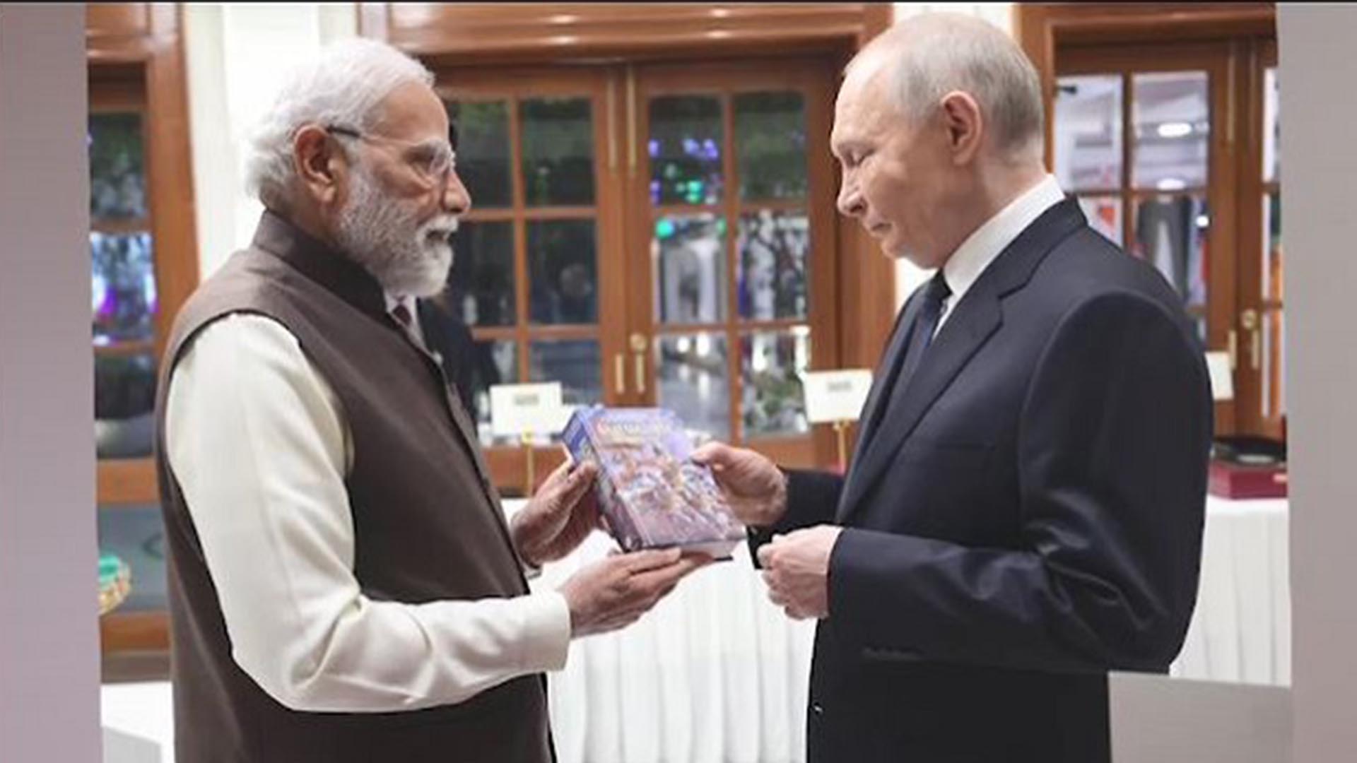 ରୁଷ ରାଷ୍ଟ୍ରପତି ପୁଟିନଙ୍କୁ ଗୀତା ଉପହାର । ରୁଷ ଭାଷାରେ ଲିଖିତ ଗୀତାକୁ ଉପହାର ଭାବେ, ପୁଟିନଙ୍କୁ ପ୍ରଦାନ କରିଛନ୍ତି ପ୍ରଧାନମନ୍ତ୍ରୀ ନରେନ୍ଦ୍ର ମୋଦି । ରାତିରେ ପ୍ରଧାନମନ୍ତ୍ରୀଙ୍କ ବାସ ଭବନରେ ନୈଶ୍ୟ ଭୋଜନ କରିଥିଲେ ପୁଟିନ । ଏହି ଅବସରେ ବିଭିନ୍ନ ପ୍ରସଙ୍ଗରେ ଆଲୋଚନା ସହ ଗୀତା ଉପହାର ଦେଇଛନ୍ତି । ସୋସିଆଲ ମିଡିଆରେ ସୂଚନା ଦେଇ ମୋଦି ଲେଖିଛନ୍ତି, ରାଷ୍ଟ୍ରପତି ପୁଟିନଙ୍କୁ ରୁଷିଆ ଭାଷାରେ ଗୀତାର ଏକ କପି ପ୍ରଦାନ କଲି । ଗୀତାର ଶିକ୍ଷା ବିଶ୍ୱର ଲକ୍ଷ ଲକ୍ଷ ଲୋକଙ୍କୁ ପ୍ରେରଣା ଦିଏ ।
