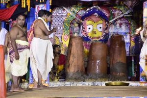 ପୁରୀ : ପୁରୀରେ ସମ୍ପର୍ଣ୍ଣ ହେଲା ମହାପ୍ରଭୁଙ୍କ ଅଧରପଣା ନୀତି । ଶ୍ରୀବିଗ୍ରହଙ୍କ ଆଗରେ ଅଧର ଉଚ୍ଚର ପଣା ହାଣ୍ଡି ପ୍ରସ୍ତୁତ ହୋଇ ରହିଥିଲା। ୩ ରଥରେ ୯ଟି ମାଟିପାତ୍ରରେ ପଣା ପ୍ରସ୍ତୁତ ହୋଇଥିଲା। ତିନିରଥରେ ପୂଜାର୍ଚ୍ଚନା ପରେ ଭଙ୍ଗାଯାଇଥିଲା ହାଣ୍ଡି। ମଧ୍ୟାହ୍ନ ଧୂପ ପରେ ତିନି ରଥରେ ଏହି ନୀତି ଆରମ୍ଭ ହୋଇଥିଲା।