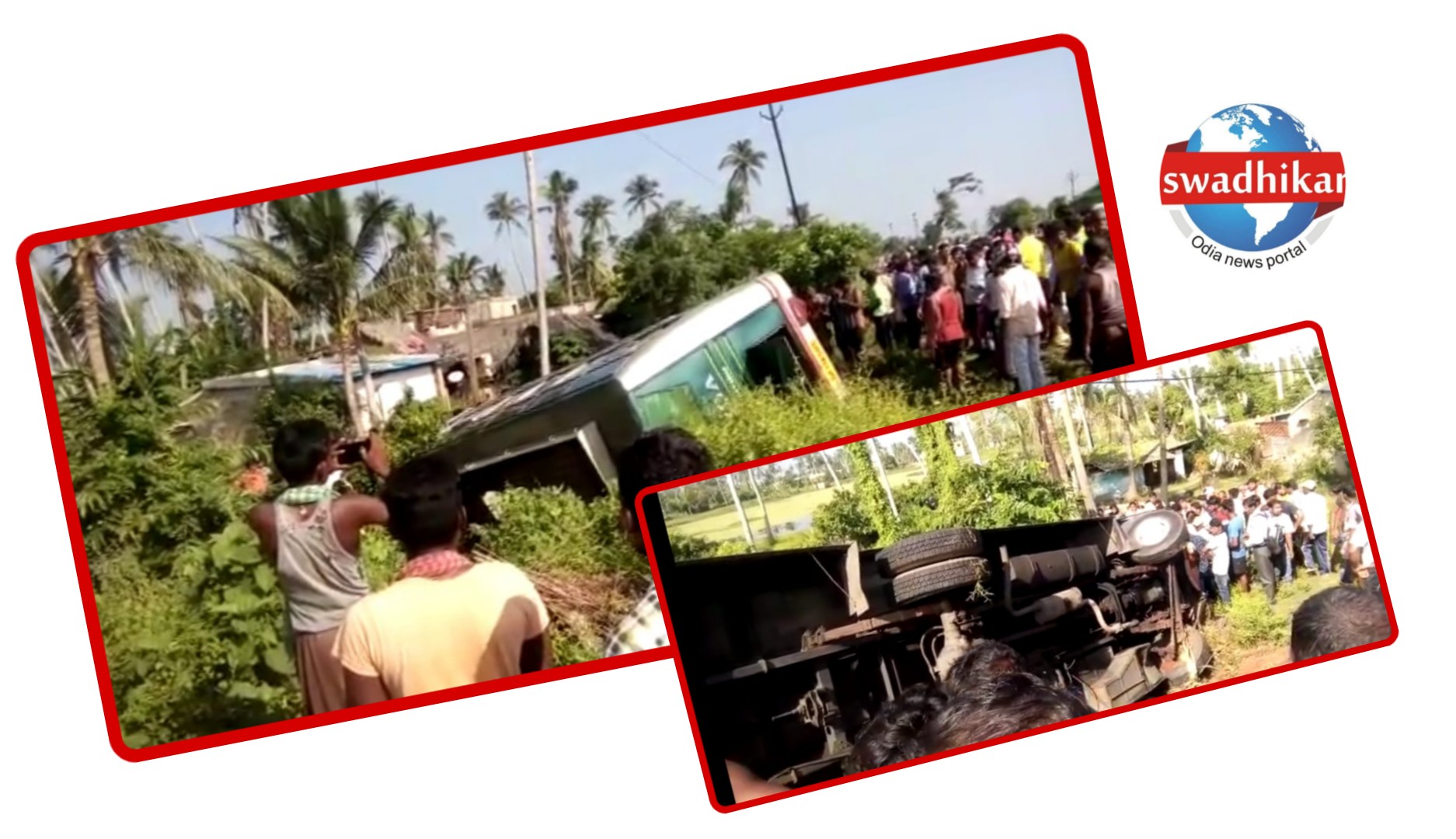 ବିରଗୋବିନ୍ଦପୁର ଠାରେ ଏକ ବାଇକ ସମ୍ନାକୁ ଆସିଯିବାରୁ ତାକୁ ବଞ୍ଚାଇବାକୁ ଯାଇ ବସଟି ନିଜର ଭାରସମ୍ୟ ହରାଇ ରାସ୍ତାକଡ଼ ଖାଲକୁ ଖସି ପଡ଼ିଥିଲା। ଯାହାଫଳରେ ଏଥିରେ ଯାତ୍ରା କରୁଥିବା ଯାତ୍ରୀ ଆହତ ହୋଇଥିଲେ। ସେମାନଙ୍କୁ ଚିକିତ୍ସା ପାଇଁ ଭୁବନେଶ୍ବର ସ୍ଥାନାନ୍ତରିତ କରାଯାଇଛି। ଏ ଖବର ପାଇବା ପରେ ସ୍ଥାନୀୟ ପୋଲିସ ଓ ଅଗ୍ନିଶମ ବିଭାଗ ଘଟଣାସ୍ଥଳରେ ପହଞ୍ଚି ଉଦ୍ଧାର କାର୍ଯ୍ୟ ଆରମ୍ଭ କରିଛି।