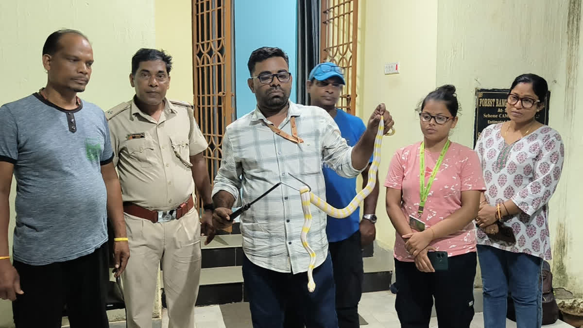 ଭଦ୍ରକରୁ ବିରଳ ଆଲବିନୋ ରଣା ଉଦ୍ଧାର ହୋଇଛି । ସ୍ନେକ ହେଲ୍ପ ଲାଇନର ସାଧାରଣ ସମ୍ପାଦକ ଶୁଭେନ୍ଦୁ ମଲ୍ଲିକଙ୍କ ଠାରୁ ସୂଚନା ପାଇ ସାପକୁ ଉଦ୍ଧାର କରିଛି ବନ ବିଭାଗ । ମୁହଁରେ ଖଣ୍ଡିଆ ଥିବାରୁ ସାପର ସ୍ୱାସ୍ଥ୍ୟ ଭଲ ମନ୍ଦ ଦେଖିବା ପାଇଁ ଭଦ୍ରକ ଡିଭିଜନର ACF ସୁମିତ ମହାନ୍ତି ସ୍ନେକ ହେଲ୍ପ ଲାଇନକୁ ଅନୁରୋଧ କରିଛନ୍ତି । ଅଧିକ ଚିକିତ୍ସା ଆବଶ୍ୟକତା ଥିବାରୁ ସାପକୁ ନନ୍ଦନକାନନ ପଠେଇବା ପାଇଁ ସ୍ନେକ ହେଲ୍ପ ଲାଇନ ତରଫରୁ ପରାମର୍ଶ ଦିଆଯାଇଛି ।ଭଦ୍ରକ ଜିଲ୍ଲାର ବନ୍ତ ବ୍ଲକର ଛୁଆଳ ସିଂହ ଅଞ୍ଚଳରୁ ଏକ ହଳଦିଆ ଧଳା ରଙ୍ଗର ସାପ ସ୍ଥାନୀୟ ଲୋକ ମାନେ ଧରି ଏକ ପ୍ଲାଷ୍ଟିକ ଡବାରେ ରଖିଥିଲେ । ସ୍ନେକ ହେଲ୍ପ ଲାଇନର ସାଧାରଣ ସମ୍ପାଦକ ଶୁଭେନ୍ଦୁ ମଲ୍ଲିକଙ୍କୁ ଫୋନ କରି ଲୋକ ମାନେ ସାପଟିକୁ ଉଦ୍ଧାର କରିବା ପାଇଁ ଅନୁରୋଧ କରିଥିଲେ । ଫଟୋ ଦେଖି ସାପ ବିରଳ ଆଲବିନୋ ରଣା ବୋଲି ଶୁଭେନ୍ଦୁ ଜାଣିବାକୁ ପାଇଥିଲେ । ତେଣୁ ଭଦ୍ରକ ଡିଭିଜନର ACF ସୁମିତ ମହାନ୍ତିଙ୍କୁ ସାପର ଫୋଟୋ ପଠେଇ ଉଦ୍ଧାର ପାଇଁ ଶୁଭେନ୍ଦୁ ଅନୁରୋଧ କରିଥିଲେ । ACF ଙ୍କ ନିର୍ଦ୍ଦେଶରେ ବନ ବିଭାଗ ଷ୍ଟାଫ ସାପଟିକୁ ଉଦ୍ଧାର କରି ଭଦ୍ରକ ରେଞ୍ଜ ଅଫିସକୁ ଆଣିଥିଲେ ।ଶୁଭେନ୍ଦୁଙ୍କ ଠାରୁ ଖବର ପାଇ ଯାଜପୁର ଟାଉନରୁ ସ୍ନେକ ହେଲ୍ପ ଲାଇନର ଏକ 3 ଜଣିଆ ଟିମ ଭଦ୍ରକ ରେଞ୍ଜ ଅଫିସ ଯାଇ ସାପକୁ ପାଣି ପିଆଇବା ବ୍ୟବସ୍ଥା କରିଛନ୍ତି । ଉଦ୍ଧାର ରଣା ମୁହଁ ପାଖରେ ଟିକେ ଖଣ୍ଡିଆ ଥିବାରୁ ସାପର ସ୍ୱାସ୍ଥ୍ୟ ଭଲ ମନ୍ଦ ଦେଖିବା ପାଇଁ ACF ସ୍ନେକ ହେଲ୍ପ ଲାଇନର ସାଧାରଣ ସମ୍ପାଦକ ଶୁଭେନ୍ଦୁ ମଲ୍ଲିକଙ୍କୁ ଅନୁରୋଧ କରିଥିଲେ । ସାପଟିର ମୁହଁ ଖଣ୍ଡିଆ ହେଇ ଥିବାରୁ ଚିକିତ୍ସା ପାଇଁ ନନ୍ଦନକାନନ ପଠେଇବା ପାଇଁ ସ୍ନେକ ହେଲ୍ପ ଲାଇନ ତରଫରୁ ପରାମର୍ଶ ଦିଆଯାଇଛି ।ବିଭିନ୍ନ ସ୍ଥାନରେ ରଣା ସାପ ମୁଖ୍ୟତଃ ଦେଖିବାକୁ ମିଳିଥାନ୍ତି । ମାତ୍ର ଆଲବିନୋ ରଣା ବା ଧଳା ହଳଦିଆ ରଙ୍ଗର ରଣା ସାପ ଖୁବ୍ ବିରଳ ଅଟେ । ଏହି ସାପ ଶରୀରରେ ମେଲାନିନ୍ ନାମକ କଣିକା ଅନୁପସ୍ଥିତ ରହିଥାଏ । ଏହା ବେଳେ ବେଳେ ଧଳା କିମ୍ବା ଇଷତ୍ ଗୋଲାପି ରଙ୍ଗର ମଧ୍ୟ ହୋଇପାରନ୍ତି । ଏହାର ଆଖିର ରଙ୍ଗ ମଧ୍ୟ ଲାଲ କିମ୍ବା ଗୋଲାପି ହୋଇପାରେ ।