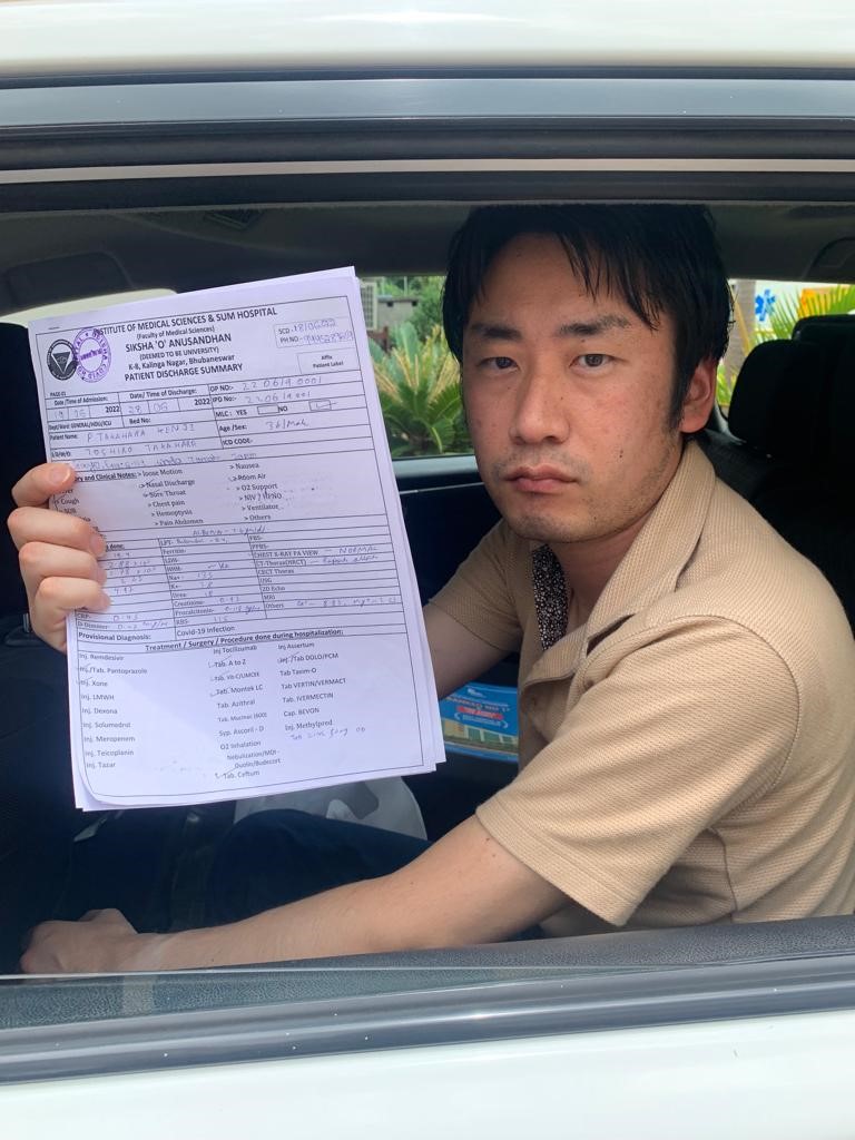 ଏକ କାର୍ଯ୍ୟକ୍ରମରେ ଯୋଗ ଦେବା ପାଇଁ ଓଡ଼ିଶା ଆସିଥିବା ବେଳେ ଜାପାନ୍‌ର ଏହି ନାଗରିକ ଜଣକ କୋଭିଡ ସଂକ୍ରମିତ ହୋଇଥିଲେ । ତେବେ ସମ୍ କୋଭିଡ ହସ୍ପିଟାଲ୍‌ର ଉତମ ଚିକିତ୍ସା ଓ ସେବା ସୁଶୃଷା ଫଳରେ ସେ ସୁସ୍ଥ ହୋଇପାରିଛନ୍ତି ଓ ଡାକ୍ତର ଏବଂ ନର୍ସମାନଙ୍କର ସେବା ନିମନ୍ତେ ସେମାନଙ୍କୁ ଧନ୍ୟବାଦ ଜଣାଇଛନ୍ତି ।