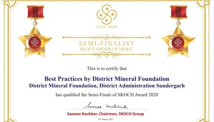 ୭୦ତମ ସ୍କଚ୍ ସମ୍ମିଳନୀ ଓ ଭର୍ଚୁଆଲ ପ୍ରଦର୍ଶନୀରେ ସାରା ଦେଶରୁ ୧ ହଜାରରୁ ଅଧିକ ବିଶେଷଜ୍ଞ ତଥା ପ୍ରତିନିଧି ଯୋଗ ଦେଇଥିଲେ। ସେଠାରେ ସୁନ୍ଦରଗଡ଼ ପ୍ରଶାସନ ଓ ଜିଲ୍ଲା ଖଣିଜ ପ୍ରତିଷ୍ଠାନର ବିଭିନ୍ନ ଅଭିନବ କାର୍ଯ୍ୟ ଓ ପ୍ରକଳ୍ପ ଏବଂ ତାହାର ପ୍ରଭାବ ସମ୍ପର୍କରେ ତଥ୍ୟ ଉପସ୍ଥାପିତ ହୋଇଥିଲା। ବିଚାରକ ମଣ୍ଡଳୀର ମୂଲ୍ୟାୟନ ଅନୁସାରେ ସ୍କଚ୍ ଆୱାର୍ଡର ସେମିଫାଇନାଲ ପର୍ଯ୍ୟାୟଭୁକ୍ତ ହୋଇ ଅର୍ଡର ଅଫ୍ ମେରିଟ୍ ଲାଭ କରିଛି ସୁନ୍ଦରଗଡ଼ ଜିଲ୍ଲା ପ୍ରଶାସନ ଓ ଜିଲ୍ଲା ଖଣିଜ ପ୍ରତିଷ୍ଠାନ।