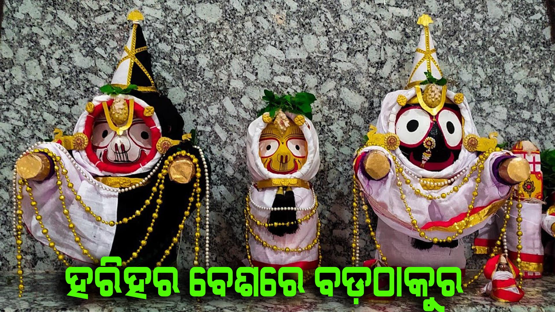 ଆଜି ବଡ଼ ଠାକୁରଙ୍କ ହରିହର ବେଶ। ଶ୍ରୀମନ୍ଦିରରେ ଅବକାଶ ନୀତି ପରେ ବଡ଼ଠାକୁରଙ୍କୁ ହରିହର ବେଶରେ ସଜିତ କରାଯିବ। ବଡ଼ଠାକୁରଙ୍କୁ ହର ବା ଶିବ ବୋଲି ବିବେଚନା କରାଯାଏ। ଏହି ବେଶରେ ହରି (ବିଷ୍ଣୁ) ଓ ହର (ଶିବ)ଙ୍କ ଆତ୍ମୀୟତା ପ୍ରସ୍ଫୁଟିତ ହେବ। ଏହି ବେଶରେ ବଡ଼ଠାକୁର ଅର୍ଦ୍ଧେକ ଧଳା ଓ ଅର୍ଦ୍ଧେକ କଳା ଦିଶିବା ସହ ୩୨ ପ୍ରକାର ସୁବର୍ଣ୍ଣ ଅଳଙ୍କାର ପରିଧାନ କରିବେ l