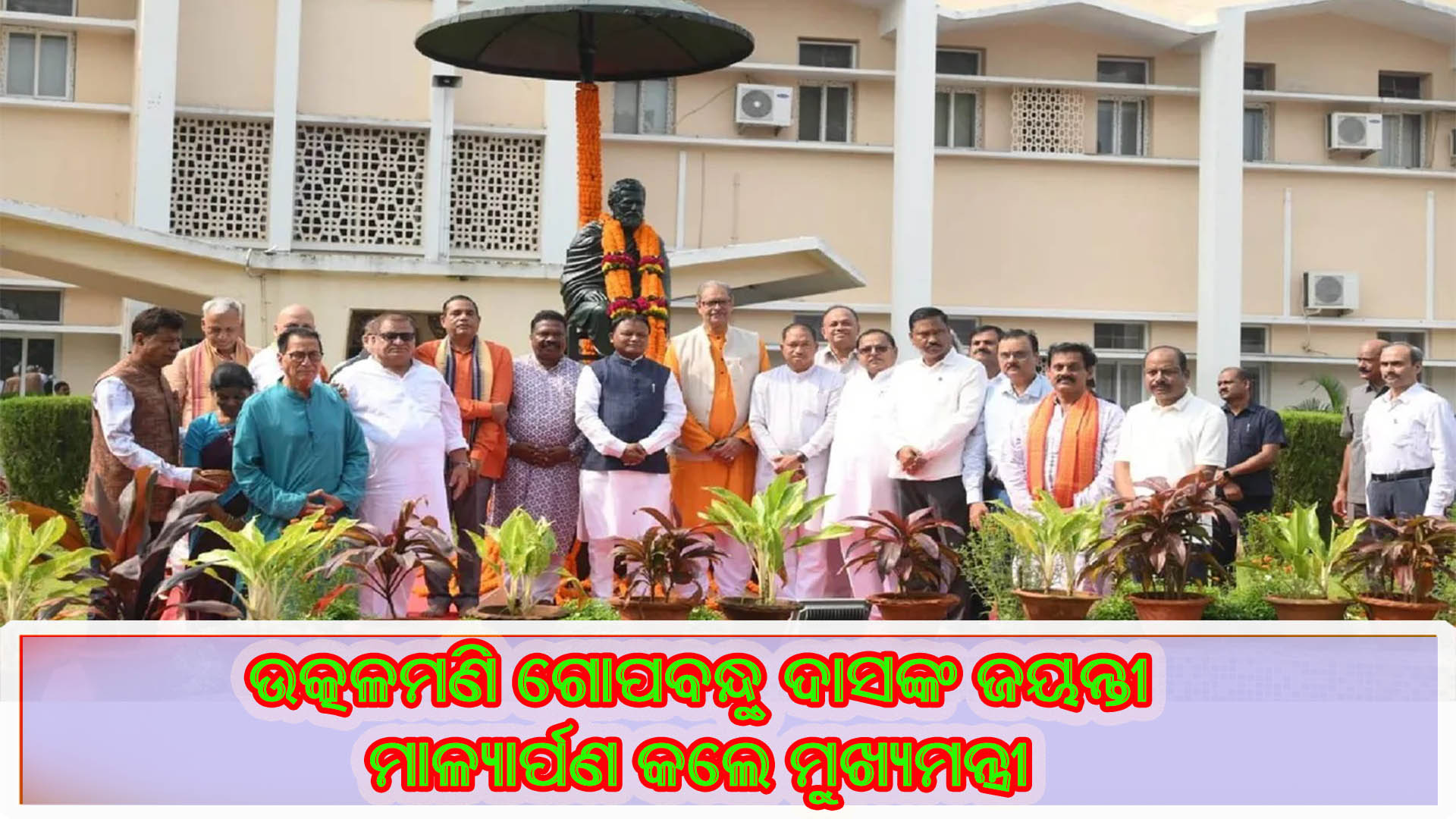ଉତ୍କଳମଣି ଗୋପବନ୍ଧୁ ଦାସଙ୍କ ଜୟନ୍ତୀ: ମାଲ୍ୟାର୍ପଣ କଲେ ମୁଖ୍ୟମନ୍ତ୍ରୀ By Swadhikar News Last updated Oct 9, 2025 ଗୁରୁବାର ଉତ୍କଳମଣି ଗୋପବନ୍ଧୁ ଦାସଙ୍କ ଜନ୍ମ ଜୟନ୍ତୀ। ଏହି ଅବସରରେ ରାଜ୍ୟସ୍ତରୀୟ ଜୟନ୍ତୀ ସମାରୋହ ଆୟୋଜନ କରାଯାଇଛି। ବିଧାନସଭା ପରିସରରେ ଗୋପବନ୍ଧୁ ଦାସଙ୍କ ପ୍ରତିମୂର୍ତ୍ତିରେ ମୁଖ୍ୟମନ୍ତ୍ରୀ ମୋହନ ଚରଣ ମାଝୀ ପୁଷ୍ପ ମାଲ୍ୟାର୍ପଣ କରିଛନ୍ତି।ଉପମୁଖ୍ୟମନ୍ତ୍ରୀ କେଭି ସିଂଦେଓ, ପଞ୍ଚାୟତରାଜ ମନ୍ତ୍ରୀ ରବି ନାଏକ, ବିଧାୟକ ବାବୁ ସିଂଙ୍କ ସମେତ ଅନେକ ବରିଷ୍ଠ ଅଧିକାରୀ ଉପସ୍ଥିତ ରହି ପୁଷ୍ପ ମାଲ୍ୟାର୍ପଣ କରିଛନ୍ତି। ଏହି ଅବସରରେ ଉତ୍କଳମଣିଙ୍କ ଲୋକପ୍ରିୟ ସଙ୍ଗୀତ ମିଶୁ ମୋର ଦେହ ଏ ଦେଶ ମାଟିରେ ଗାନ କରାଯାଇଥିଲା। ଗୋପବନ୍ଧୁଙ୍କ ଦାୟାଦ ଓ ବରପୁତ୍ରମାନଙ୍କୁ ସମ୍ମାନ ଜଣାଇବା ସହ ଯୁବପିଢିମାନେ ତାଙ୍କ ମାର୍ଗକୁ ଅନୁକରଣ କରି ଆଗକୁ ବଢ଼ିବା ଦରକାର ବୋଲି କହିଛନ୍ତି ମୁଖ୍ୟମନ୍ତ୍ରୀ। swadhikarswadhikar newsutkalamani Share
