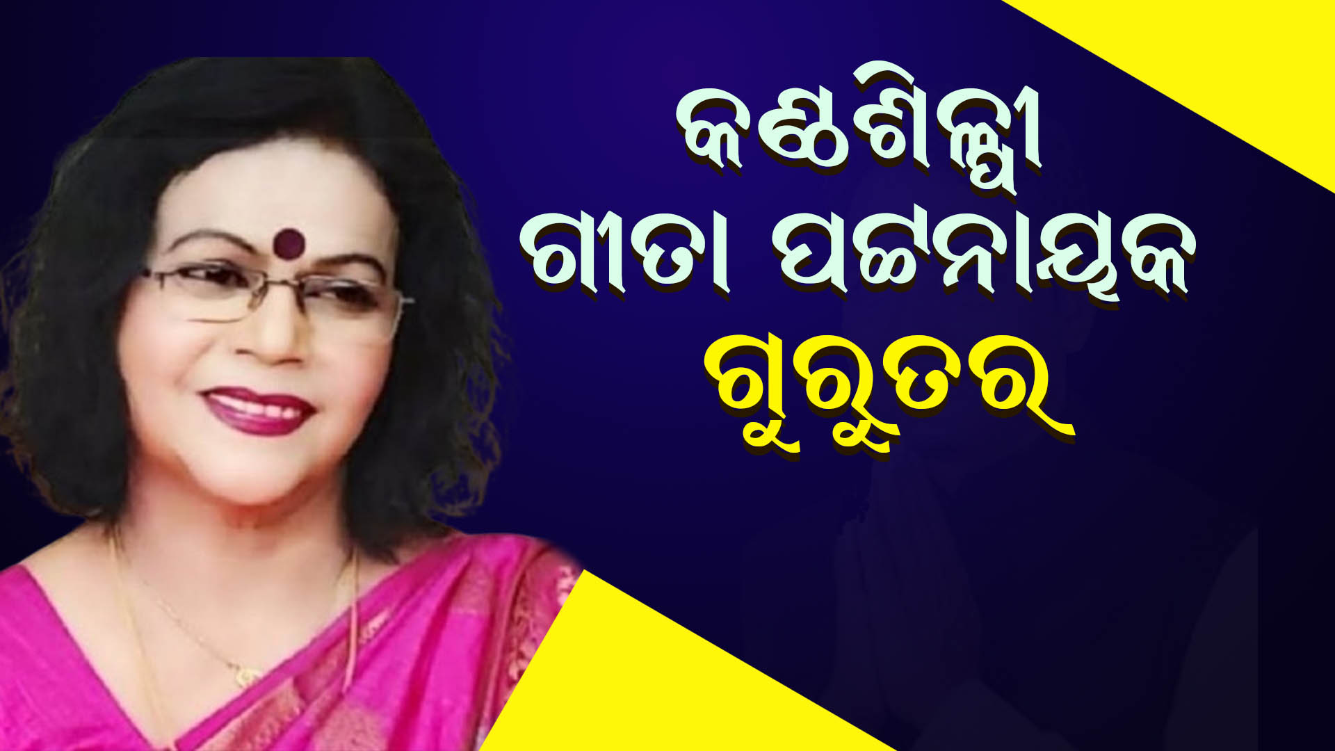 କଣ୍ଠଶିଳ୍ପୀ ଗୀତା ପଟ୍ଟନାୟକ ଗୁରୁତର । ତାଙ୍କୁ କଟକସ୍ଥିତ ଏକ ଘରୋଇ ହସ୍ପିଟାଲରେ ଭର୍ତ୍ତି କରାଯାଇଛି । ମସ୍ତିସ୍କାଘାତ ଯୋଗୁ ତାଙ୍କୁ ଆଇସିୟୁରେ ରଖି ଚିକିତ୍ସା କରାଯାଉଛି । ଗତକାଲି ସନ୍ଧ୍ୟାରେ ଅତିଥି ଭାବେ ଏକ ସାହିତ୍ୟ କାର୍ଯ୍ୟକ୍ରମରେ ଯୋଗ ଦେଇଥିଲେ । ସେଠାରେ ସେ ହଠାତ୍ ଅସୁସ୍ଥ ହୋଇପଡ଼ିବାରୁ ତାଙ୍କୁ ତୁରନ୍ତ କ୍ୟାପିଟାଲ ହସ୍ପିଟାଲରେ ଭର୍ତ୍ତି କରାଯାଇଥିଲା । ପ୍ରାଥମିକ ଚିକିତ୍ସା ପରେ ତାଙ୍କୁ ଆଇସିୟୁରେ ଭର୍ତ୍ତି କରାଯାଇଥିଲା। ପରୀକ୍ଷାରୁ ମସ୍ତିସ୍କାଘାତ ହୋଇଥିବା ଜଣାପଡ଼ିଲା । ଏବେ କଟକର ଏକ ଘରୋଇ ହସ୍ପିଟାଲ ଚିକିତ୍ସାତ ହେଉଛନ୍ତି ।