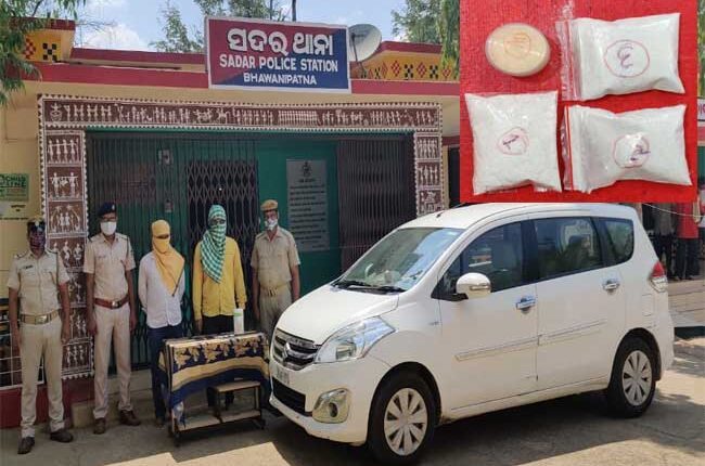 ଭବାନୀପାଟଣା: କଳାହାଣ୍ଡି ପୋଲିସ ଦ୍ୱାରା ସମ୍ବଲପୁରରୁ ଭବାନୀପାଟଣା ଆସୁଥିବା ମିଶ୍ରିତ ଡ୍ରଗ୍ସ ଜବତ ଓ ଦୁଇ ଜଣ ଗିରଫ ହୋଇଛନ୍ତି। କଳାହାଣ୍ଡି ଏସ୍ ପି ଡ. ଶ୍ରବଣ ବିବେକ ଏମ୍ ବିଶେଷ ସୂତ୍ରରୁ ଖବର ପାଇଥିଲେ, ସମ୍ବଲପୁରରୁ ଭବାନୀପାଟଣା ଆସୁଥିବା କାରରେ ବହୁ ପରିମାଣର ଡ୍ରଗ୍ସ ଭବାନୀପାଟଣା ଆସୁଛି। ଏସ ପି ଙ୍କ ନିର୍ଦ୍ଦେଶ କ୍ରମେ ଭବାନୀପାଟଣା ସଦର ପୋଲିସ ପାଷ୍ଟିକୁଡି ଛକ ନିକଟରେ ଉକ୍ତ କାରକୁ ଅଟକାଇ ଯାଞ୍ଚ କରିବାରୁ ସେଥିରେ ଡ୍ରଗ୍ସ ଥିବା ଦେଖିବାକୁ ପାଇଥିଲେ। ତୁରନ୍ତ ଉକ୍ତ କାର ଓ ସେଥିରେ ଥିବା ଦୁଇ ଜଣ ଙ୍କୁ ଥାନା କୁ ଆଣି ଜେରା ଚାଲିଛି । ଉକ୍ତ ଗାଡି ରୁ ୩୮.୭୨ ଗ୍ରାମ ମିଶ୍ରିତ ଡ୍ରଗ୍ସ ପୋଲିସ ଜବତ କରିଛି।