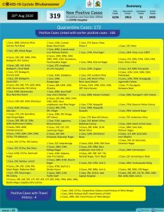 ରାଜଧାନୀ ଭୁବନେଶ୍ୱରରୁ ଆଜି ଦ୍ଵିତୀୟ ସର୍ବାଧିକ ଆକ୍ରାନ୍ତ ଚିହ୍ନଟ ହୋଇଛନ୍ତି । ଗତ ୨୪ ଘଣ୍ଟା ଭିତରେ ୩୧୯ ଜଣ ପଜିଟିଭ ଚିହ୍ନଟ ହୋଇଥିବା ନେଇ ସୂଚନା ଦେଇଛନ୍ତି ବିଏମ୍ସି କତ୍ତୃପକ୍ଷ । ଏହାକୁ ମିଶାଇ ସହରରେ ମୋଟ ଆକ୍ରାନ୍ତ ସଂଖ୍ୟ ୬୩୯୬କୁ ବୃଦ୍ଧି ପାଇଛି । ଇମଧ୍ୟରୁ ୩୯୫୩ ଜଣ ସୁସ୍ଥ ହୋଇ ଫେରିଥିବା ବେଳେ ୨୪୦୫ ଟି ଆକ୍ଟିଭ କେଶ ରହିଛି । ଯେବେକି ୩୧ ଜଣଙ୍କ ଜୀବନ କରୋନାରେ ଯାଇ ସାରିଲାଣି । ଆଜିର ଚିନ୍ହଟଙ୍କ ମଧ୍ୟରୁ ୧୭୨ ଜଣ ପୂର୍ବରୁ ସଙ୍ଗରୋଧରେ ଥିବା ବେଳେ ୧୪୭ ଜଣ ଲୋକାଲ କଣ୍ଟକଟକୁ ଆକ୍ରାନ୍ତ ହୋଇଥିବା ନେଇ ରିପୋର୍ଟ ଆସିଛି । ସୂଚନା ମୁତାବକ ଚିହ୍ନଟଙ୍କ ମଧ୍ୟରୁ ୧୬୮ ଜଣ ପୂର୍ବ ଆକ୍ରାନ୍ତଙ୍କ ଲିଙ୍କରେ ଆସିଥିଲେ । ଏମଧ୍ୟରୁ ୪ ଜଣଙ୍କର ଟ୍ରାଭେଲ ହିଷ୍ଟ୍ରୀ ରହିଛି । ଆଜି ୧୧୩ ଜଣ ସୁସ୍ଥ ହୋଇଥିବା ନେଇ ରିପୋର୍ଟ ଆସିଛି ।